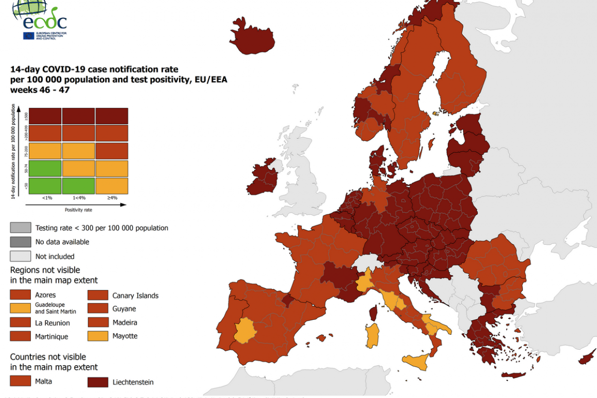 The number of countries reporting Omicron cases continues to increase globally, with a total of 352 confirmed cases reported by 27 countries as of December 1, 2021, including 70 confirmed cases reported by 13 European Union and European Economic Area (EU/EEA) countries.