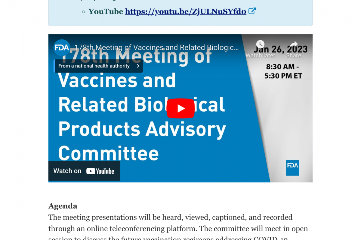 The U.S. Food and Drug Administration (FDA) has scheduled a Vaccines and Related Biological Products Advisory Committee (VRBPAC) meeting for January 26, 2023.