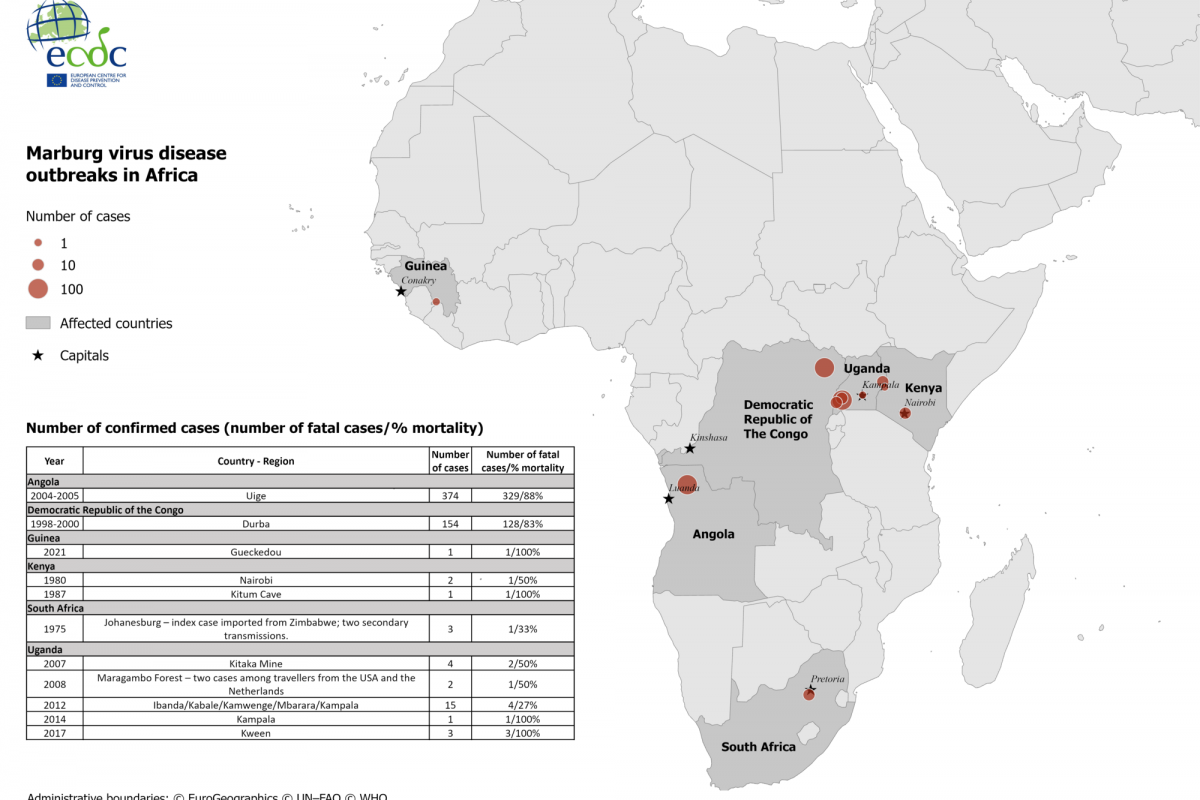 Since 1967, Angola, DR Congo, Equatorial Guinea, Cameroon, Germany, Ghana, Guinea, Kenya, Serbia, South Africa, and Uganda have confirmed Marburg cases.