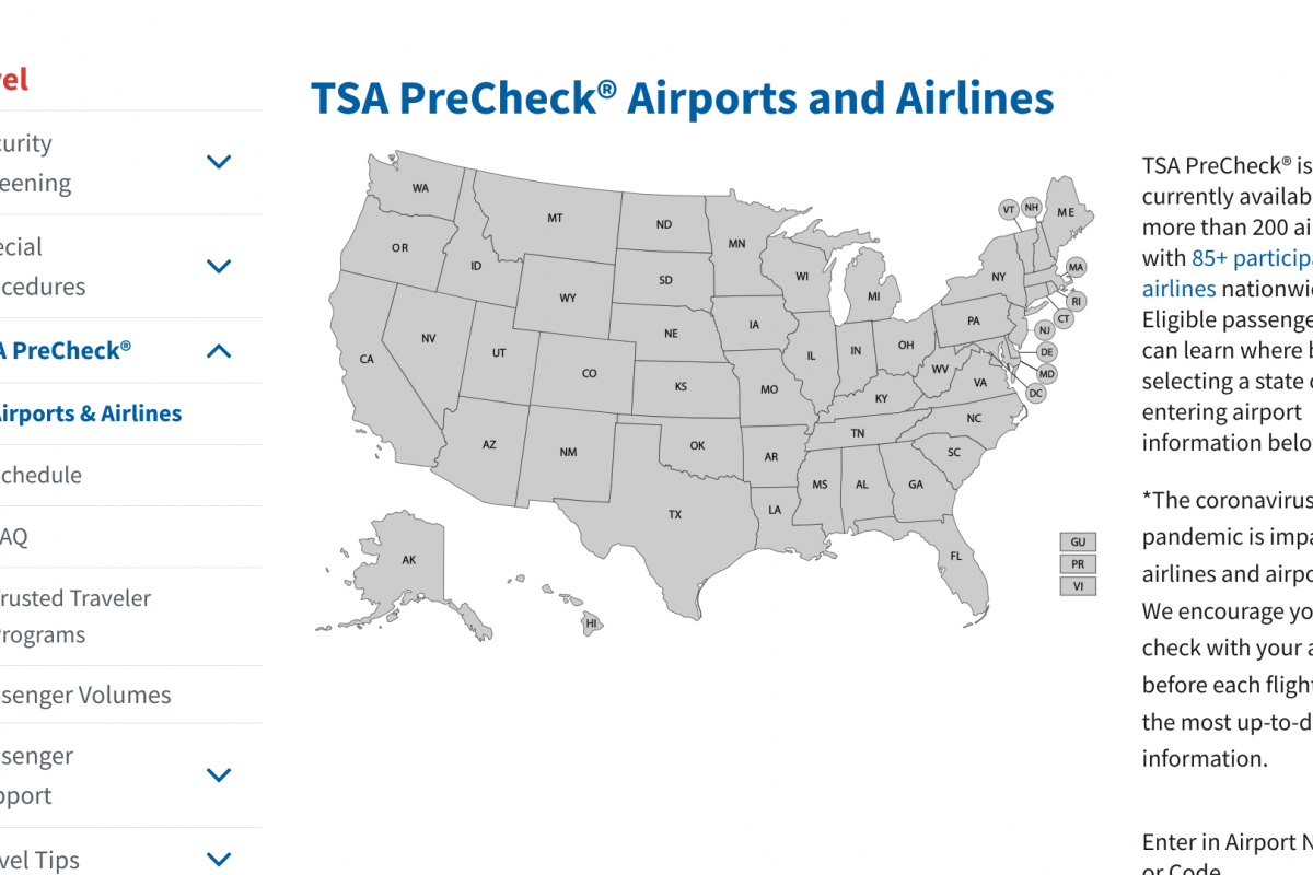 Passenger screening at the airport is part of TSA’s layered approach to security to get you safely to your destination. Search at this webpage to learn when TSA PreCheck® lanes are available at your airport.
