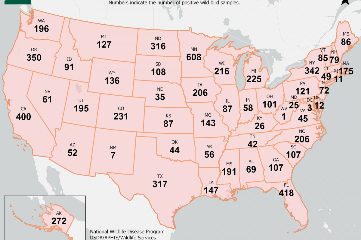 During this bird flu outbreak, there have been 7,105 virus detections in 47 U.S. states.