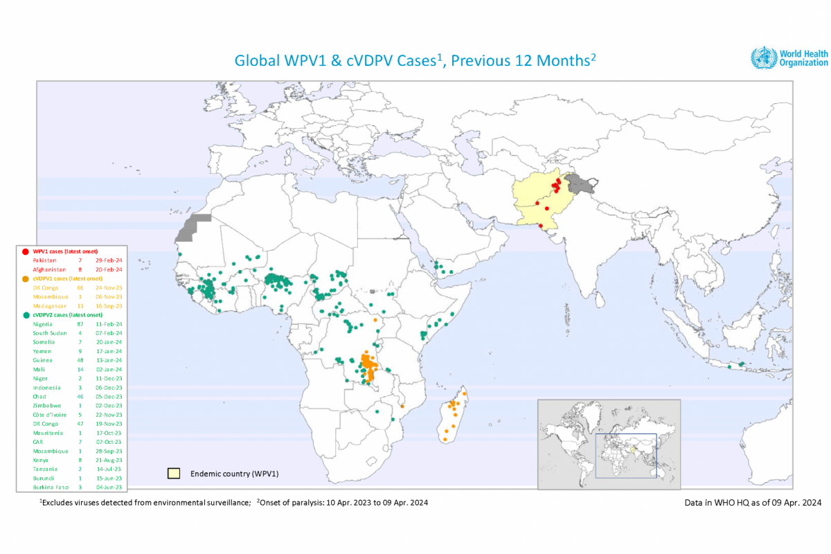 As of April 14, 2024, Afghanistan is one of the two countries in the Middle East where WPV1 is still endemic.