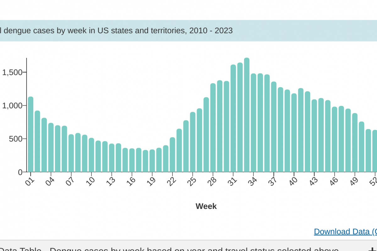 On May 13, 2024, the CDC confirmed 1,495 dengue cases reported from 39 U.S. jurisdictions. Last year, 2,932 dengue cases were confirmed in the U.S.