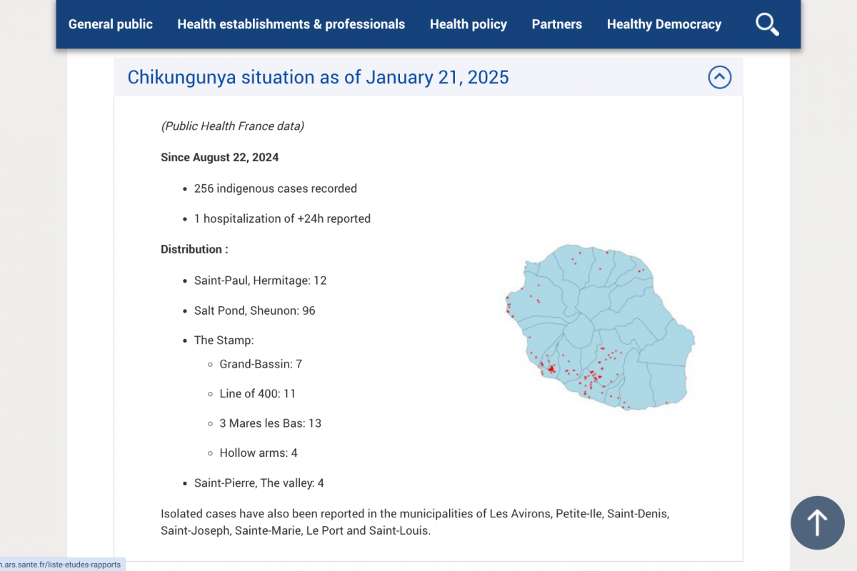 'As soon as a case of Chikungunya is reported, the ARS intervenes in the affected area, without waiting for confirmation of the case by the medical biology laboratory, to reduce the risk of spreading the virus.'