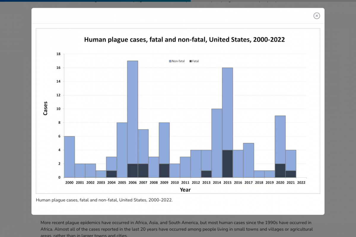 Since the mid–20th century, plagues in the United States have typically occurred in the rural West. The CDC says cases in the eastern United States are among people who traveled from the west or have laboratory exposure.