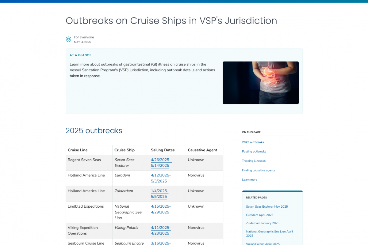 As of May 14, 2025, the U.S. CDC's Vessel Sanitation Program had reported 17 gastrointestinal (GI) illnesses on cruise ships this year, with over ten classified as norovirus outbreaks, and others still under investigation.