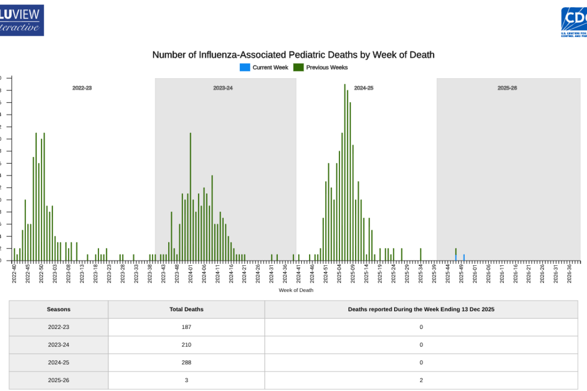 The CDC also reported on December 19, 2025, three influenza-associated pediatric deaths this season, bringing the total to three.