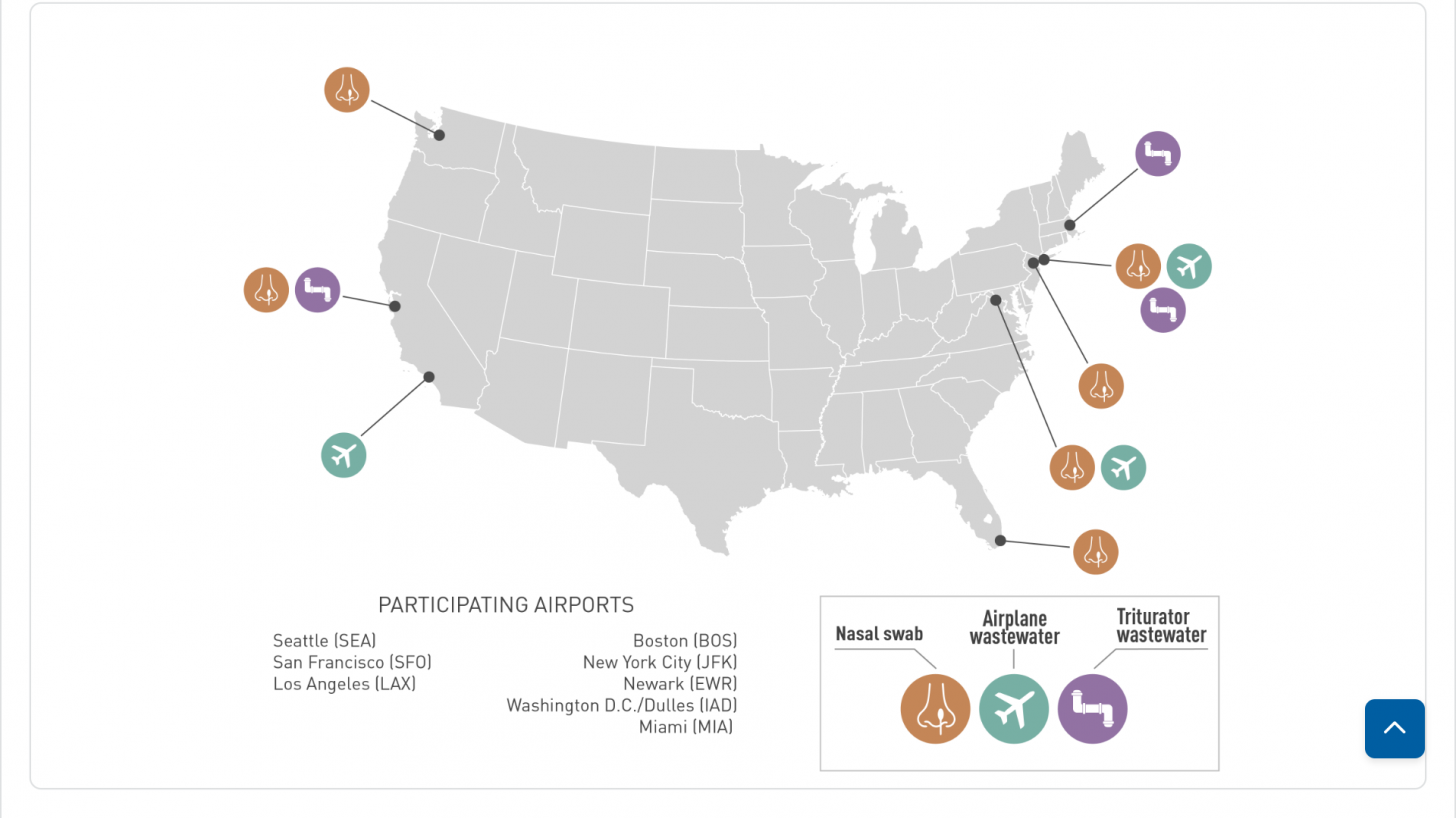 This data comes from nasal samples from arriving international air travelers, airplane wastewater, or from multiple airplanes across the United States.