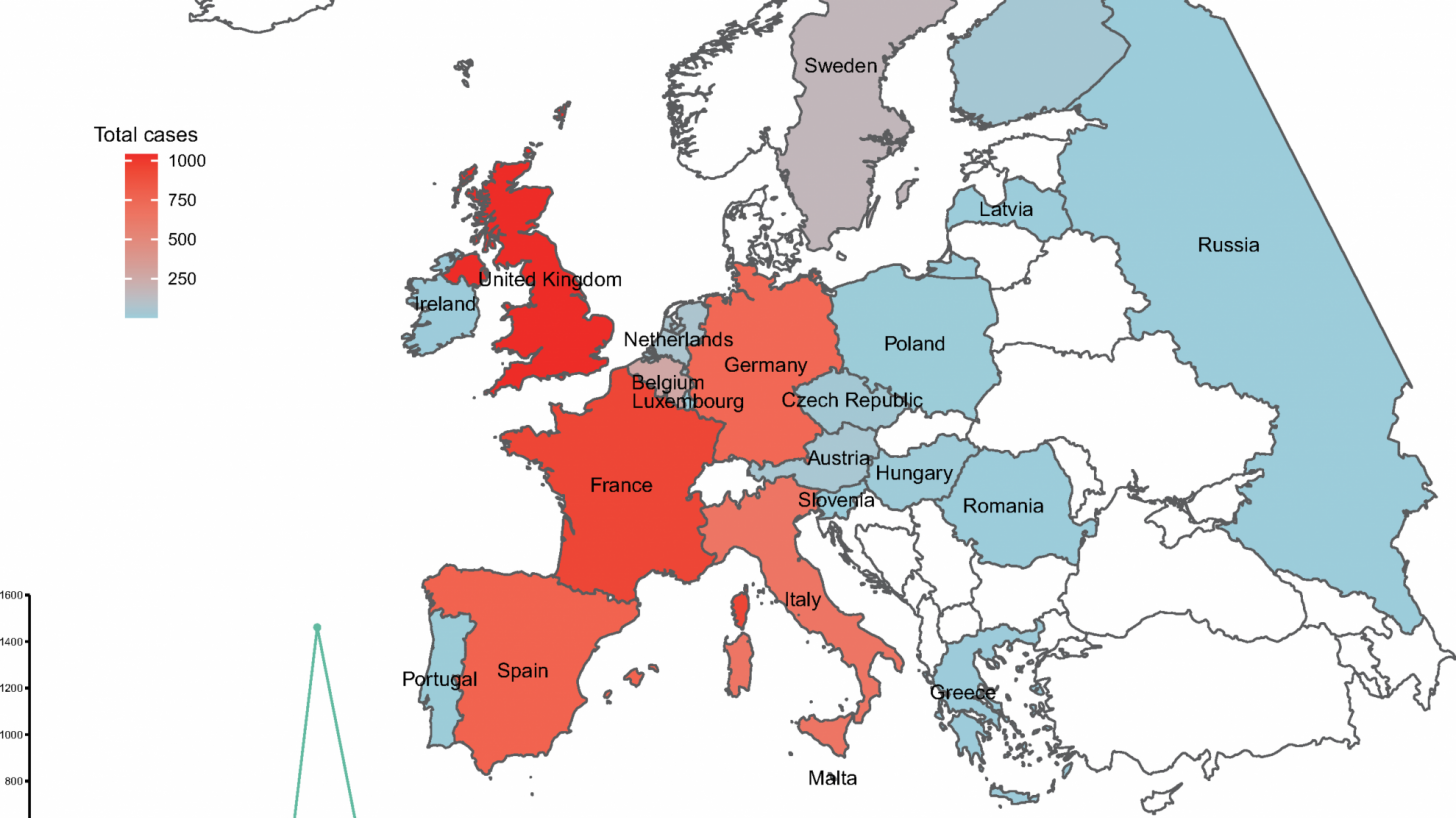 The United Kingdom had the highest number of cases (21.9%), followed by France (19.6%), Germany (14.5%), and Italy (13.6%).