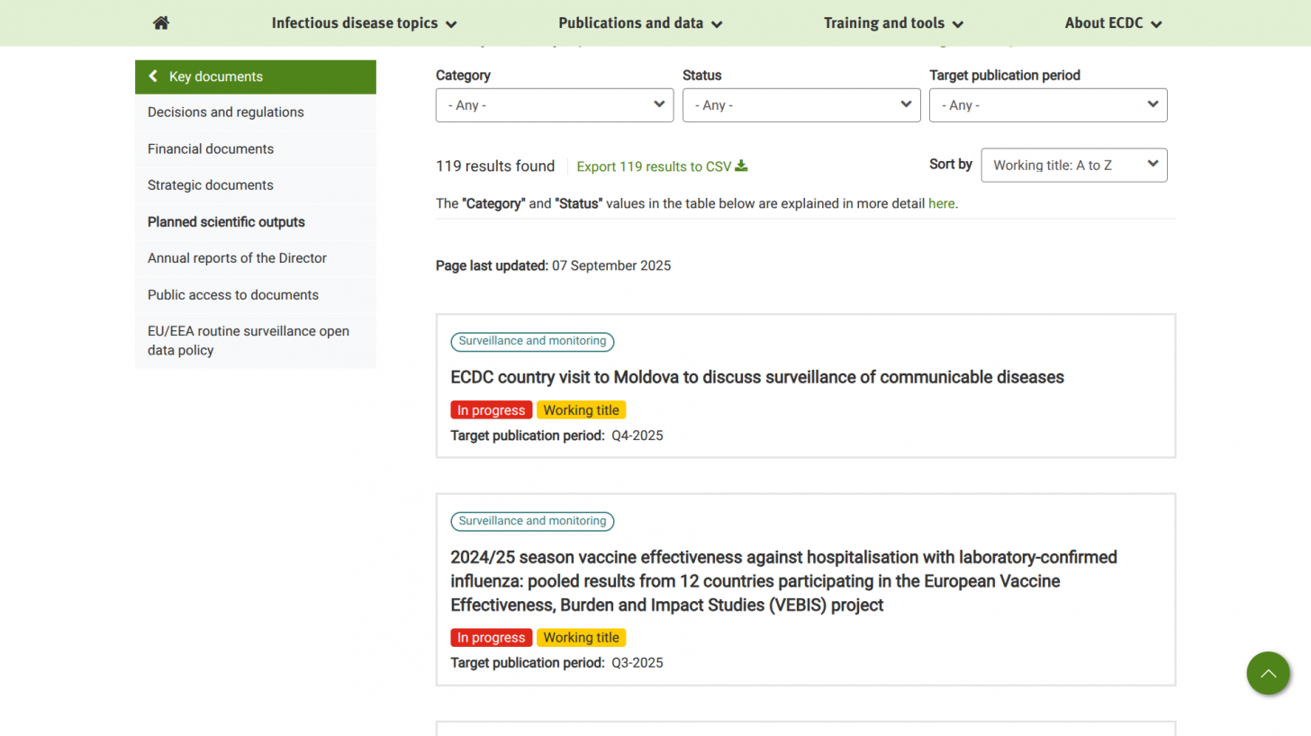 The European Centre for Disease Prevention and Control (ECDC) has announced the launch of a new public dashboard titled 'Upcoming Scientific Outputs.'