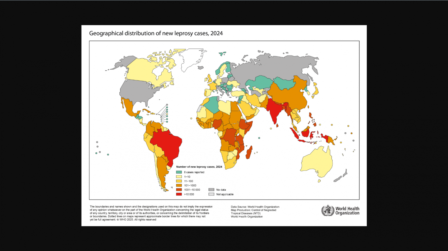Among the 188 countries, areas, or territories that submitted leprosy data in 2024, over 130 reported 172,717 new cases.