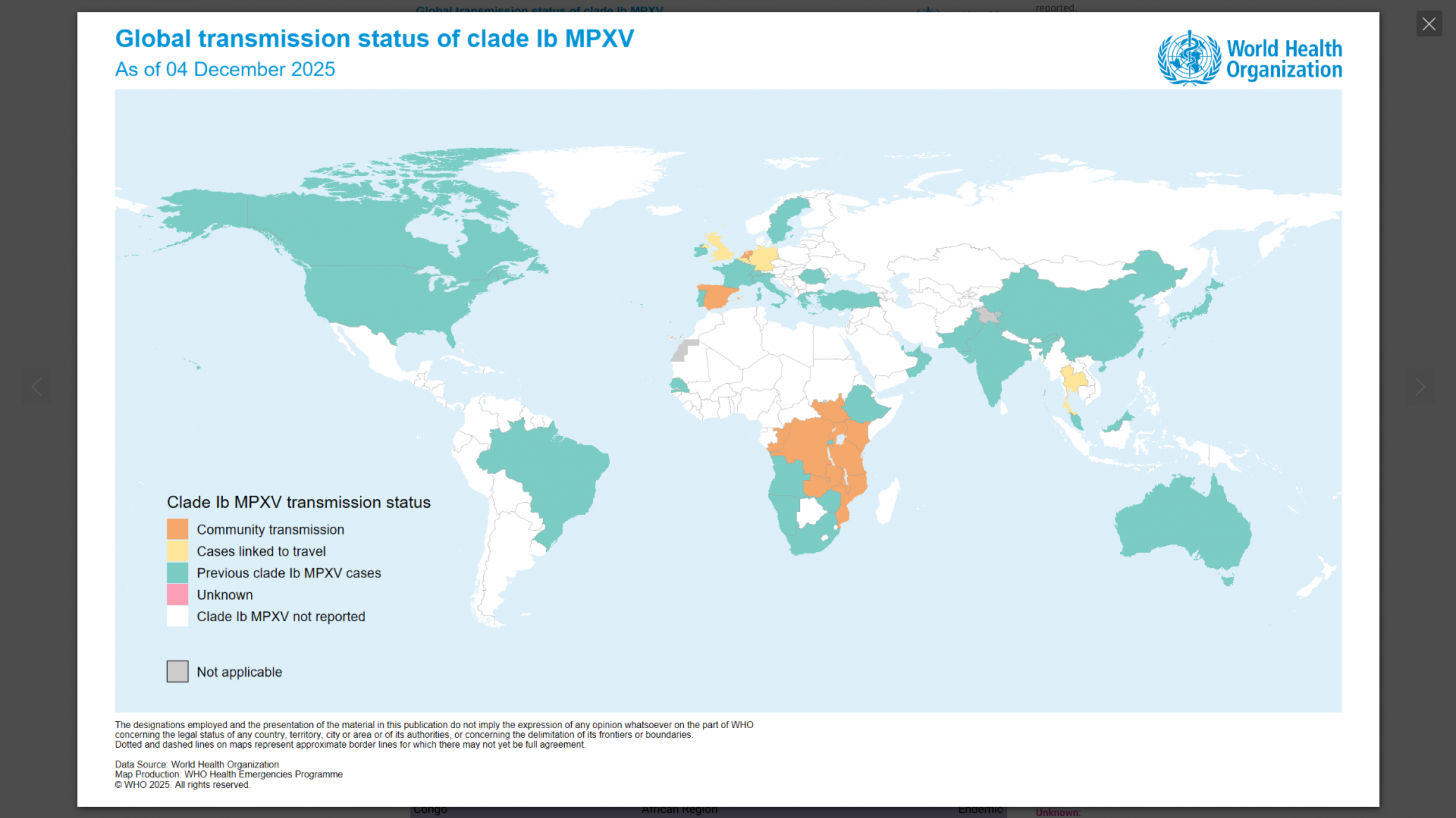 This World Health Organization report (December 2025) provides an overview of the mpox epidemiological situation, based on global surveillance data reported since January 2022. Distinct mpox clades and subclades are affecting diverse populations across different geographical regions, each exhibiting distinct transmission dynamics.