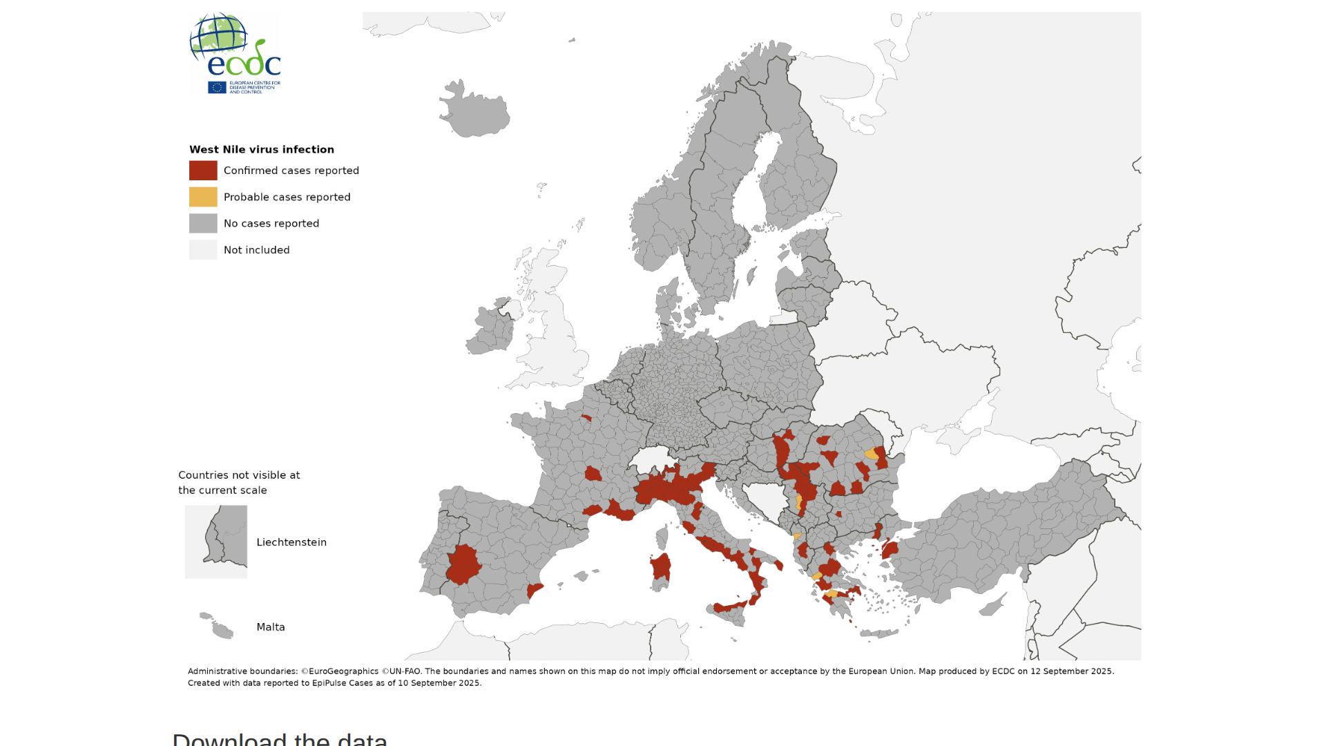 Since the beginning of 2025, ten countries in Europe have reported human cases of West Nile virus (WNV) infection: Albania, Bulgaria, France, Greece, Hungary, Italy, Romania, Serbia, Spain, and Türkiye.