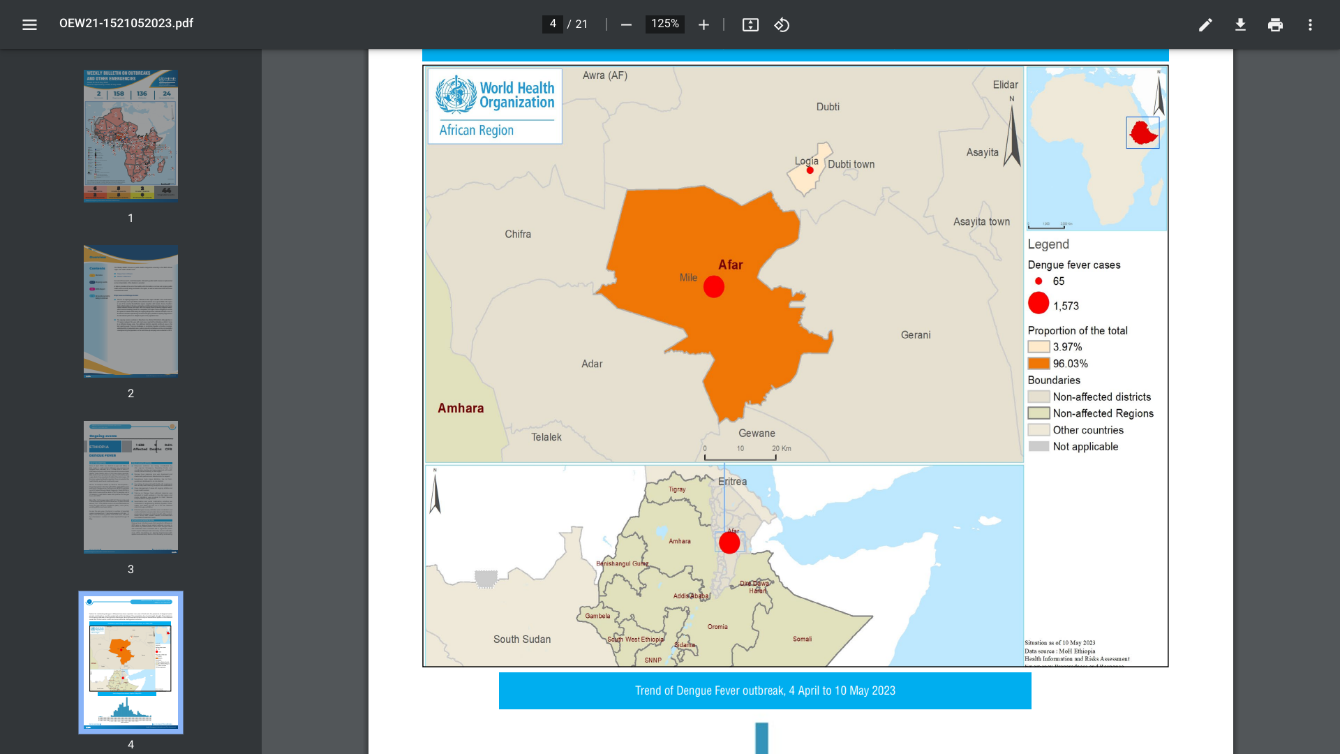 The World Health Organization (WHO) Africa Region recently reported two districts (Logia and Mille) of the Afar region in north-eastern Ethiopia are experiencing a Dengue fever outbreak.