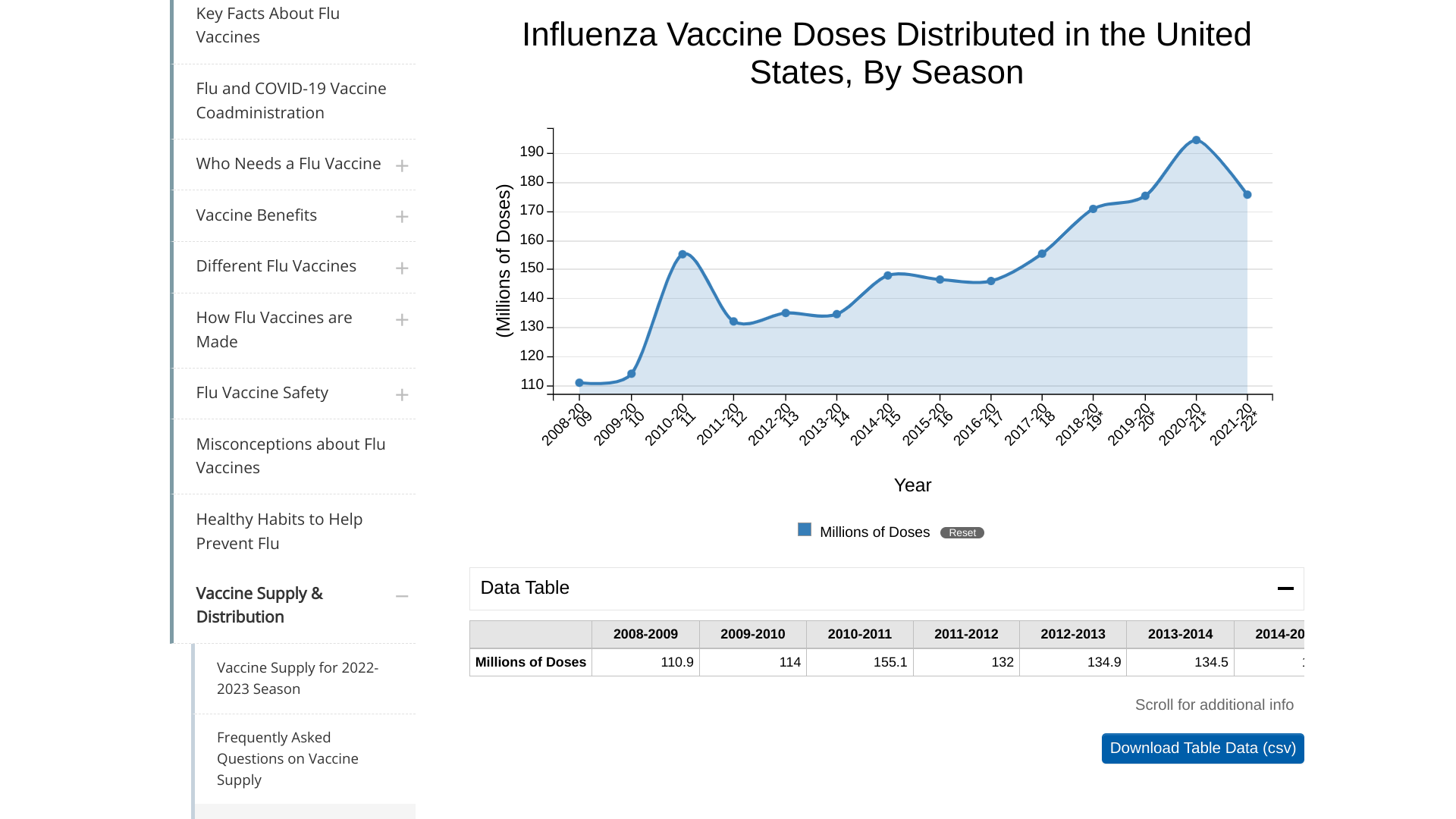During the current flu season, the Centers for Disease Control and Prevention (CDC) reported as of March 4, 2023, about 173.37 million influenza vaccines had been distributed in the U.S.
