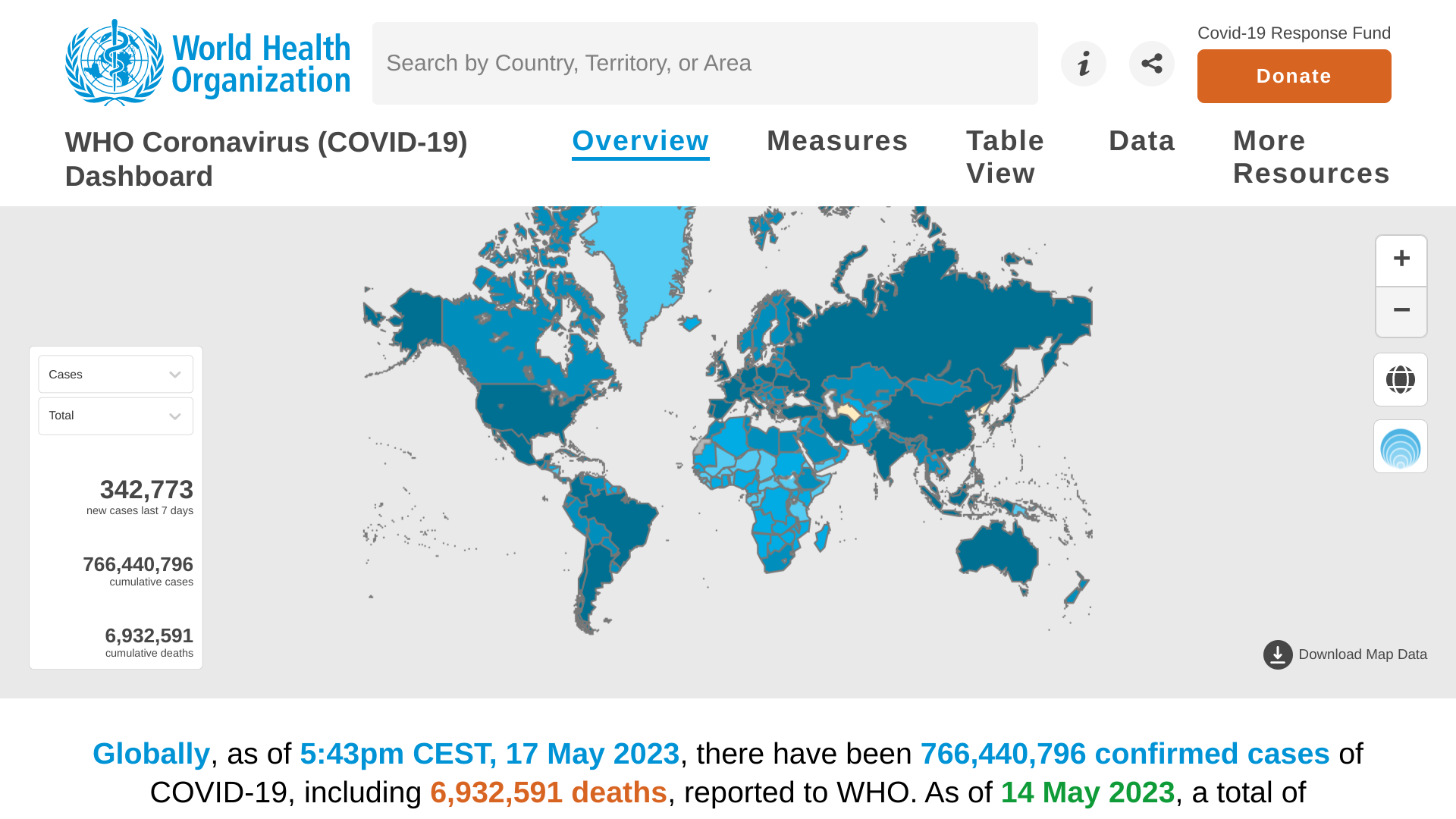 Weekly epidemiological update #143 was published on May 18, 2023, and stated the COVID-19 situation is mixed at regional levels, with increases in reported cases in South-East Asia and Western Pacific regions and increases in deaths in South-East Asia.