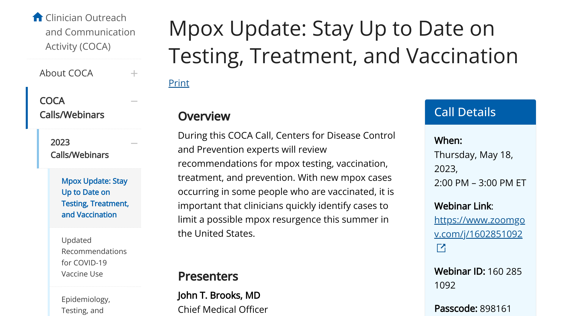 A replay of the COCA Call on May 18, 2023, will be accessible on this CDC webpage https://emergency.cdc.gov/coca/calls/2023/callinfo_051823.asp