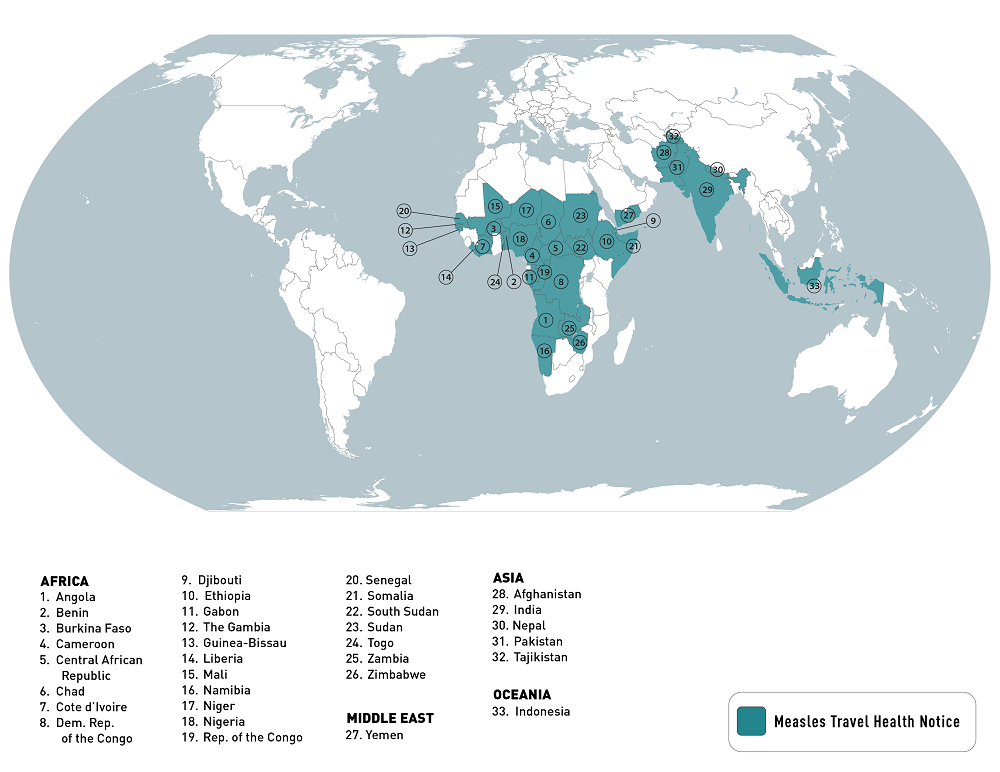 The CDC says all international travelers, including infants and preschool-aged children, should be protected against measles before traveling abroad.
