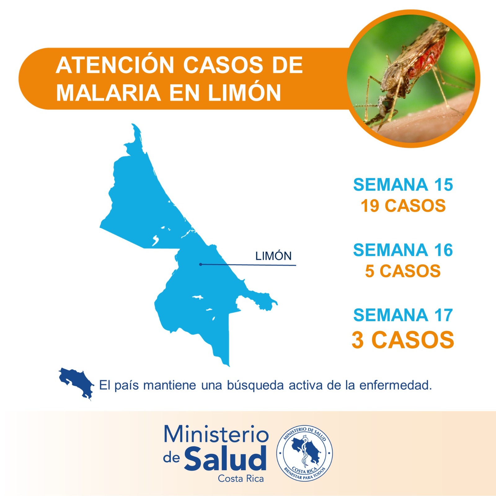 According to data recently announced from the Health Surveillance Directorate of the Costa Rican Ministry of Health, during epidemiological week #16, the Huetar Caribbean Region registered a marked decrease in malaria cases in the cantons of Limón and Pococí.