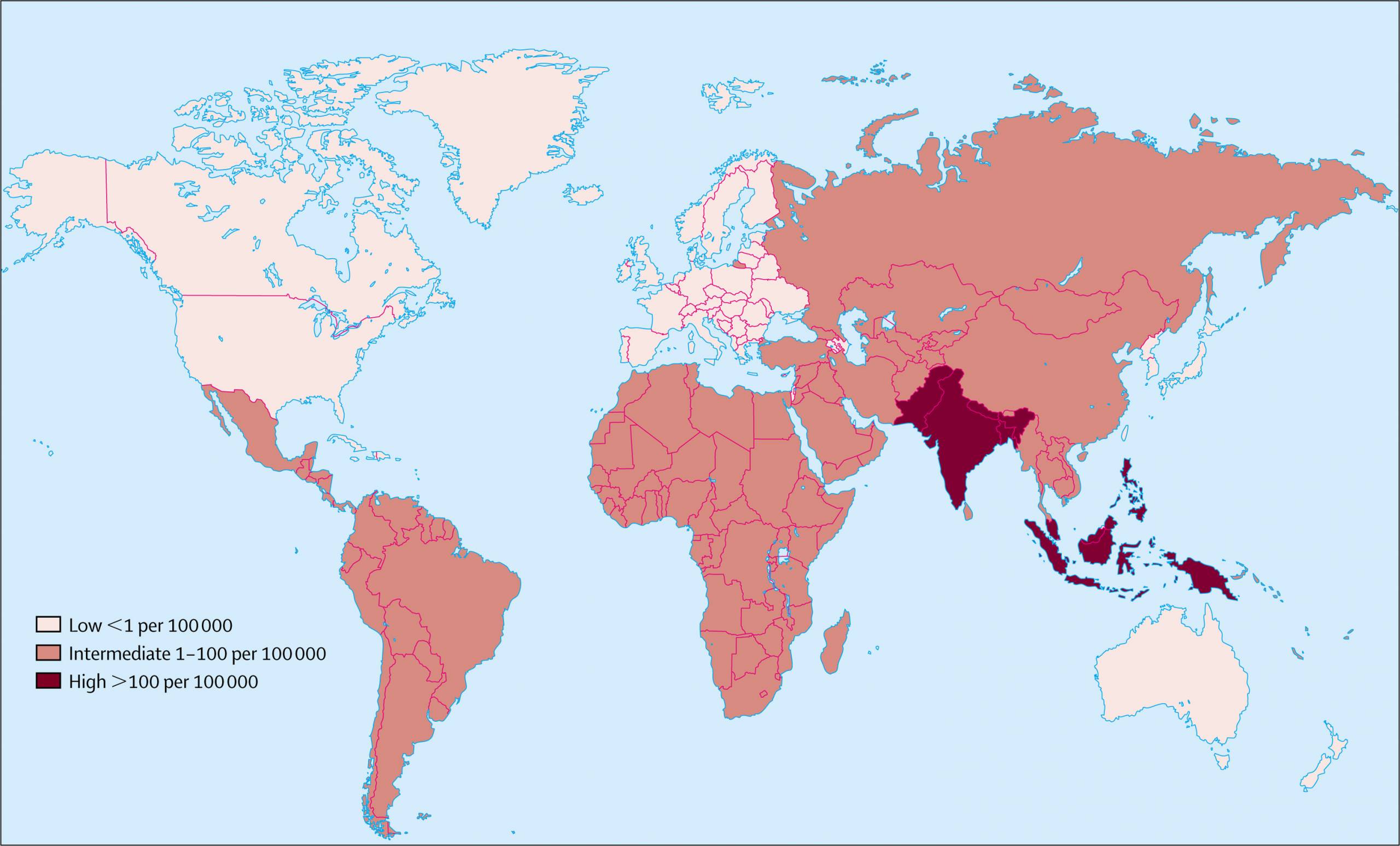 In 2004, the Chikungunya virus East/Central/South Africa genotype spread from Africa to the Indian Ocean islands, resulting in a large epidemic in Southeast Asia. A retrospective review of cases in Southeast Asia found neurological manifestations or shock in 20% of hospitalized children.