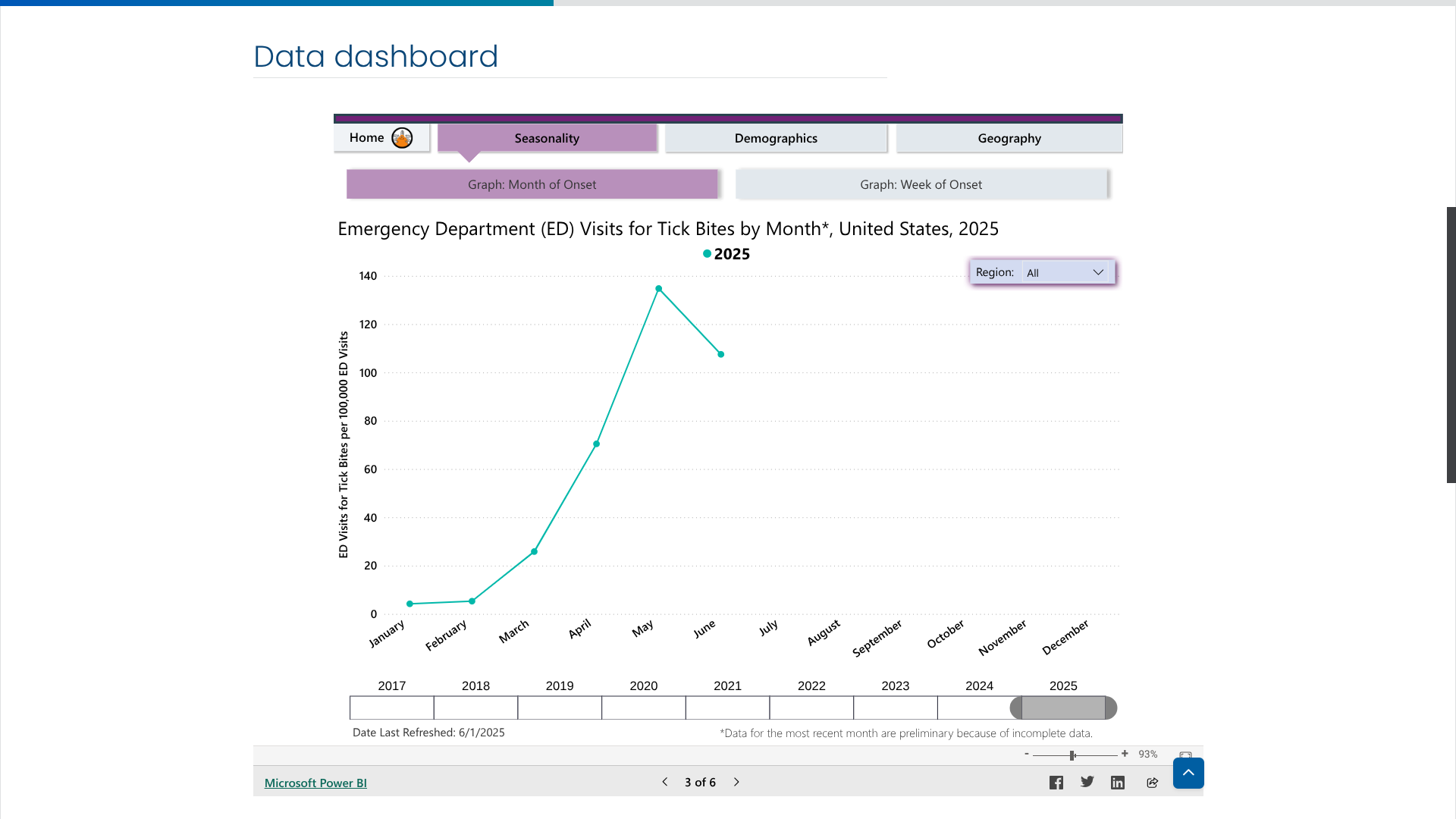 According to new data posted by the U.S. CDC's Tick Bite Data Tracker, the number of emergency room visits related to a tick bite has been decreasing over the past month.
