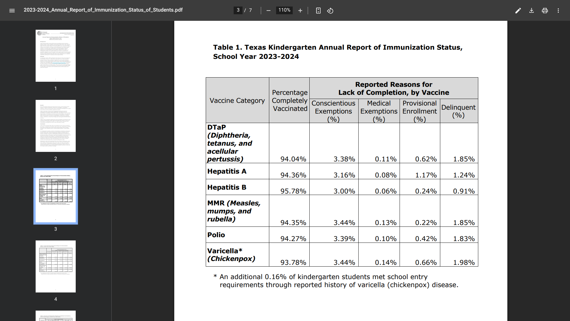 However, Texas also disclosed positive data regarding school-age vaccinations.