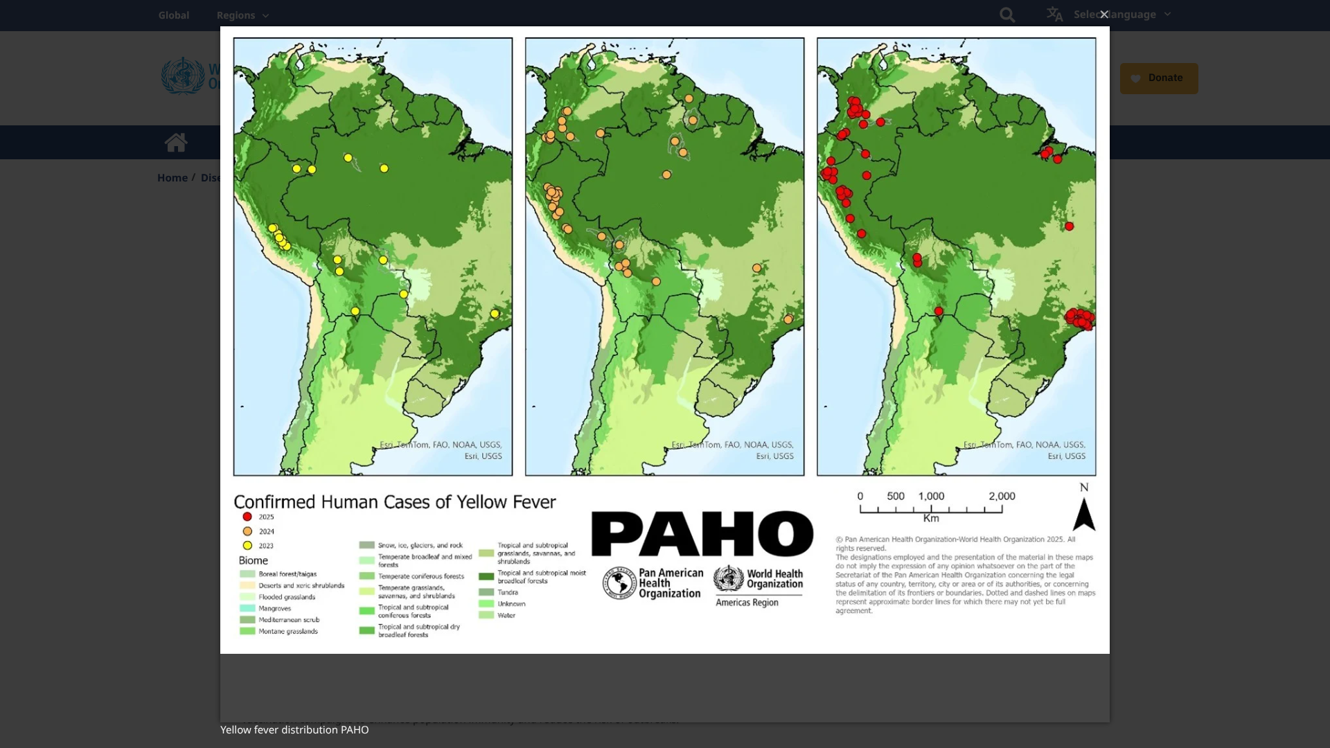 According to the World Health Organization (WHO, DON570), as of May 16, 2025, the YF virus has become endemic in tropical areas of 13 countries in the Americas.