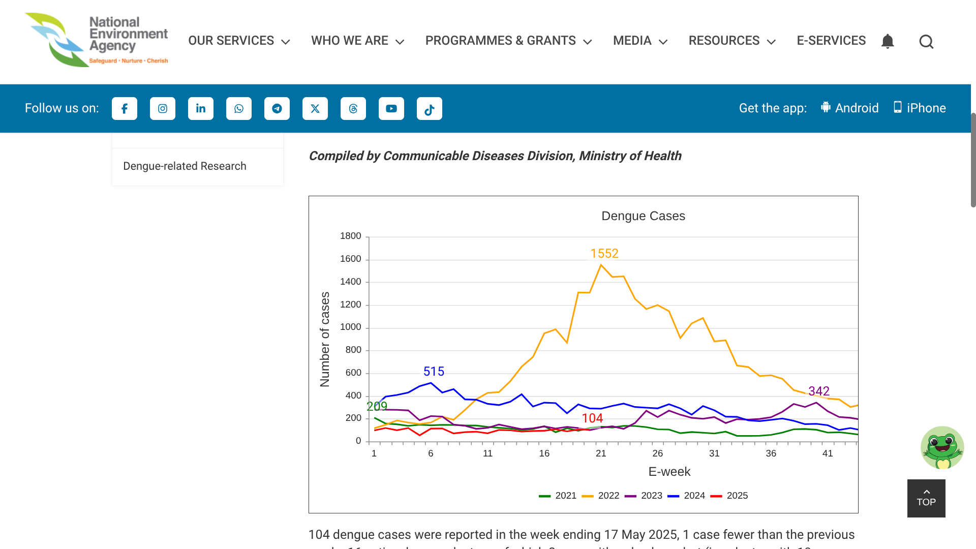 NEA reported 104 Dengue cases in the week ending May 17, 2025, 1 case fewer than the previous week.