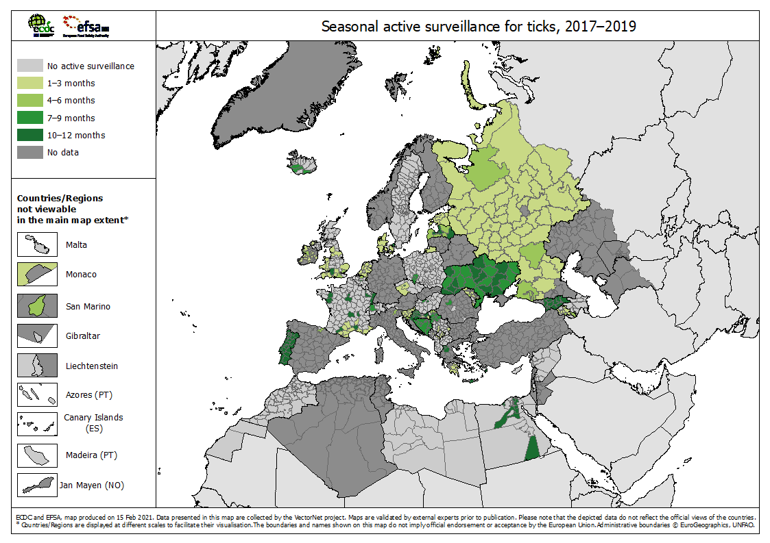 Throughout Europe, the bacteria are only transmitted by the bites of the ticks Ixodes ricinus and I. persulcatus. In the most affected regions, tick infection rates may exceed 10%. These areas are primarily located in central Europe.