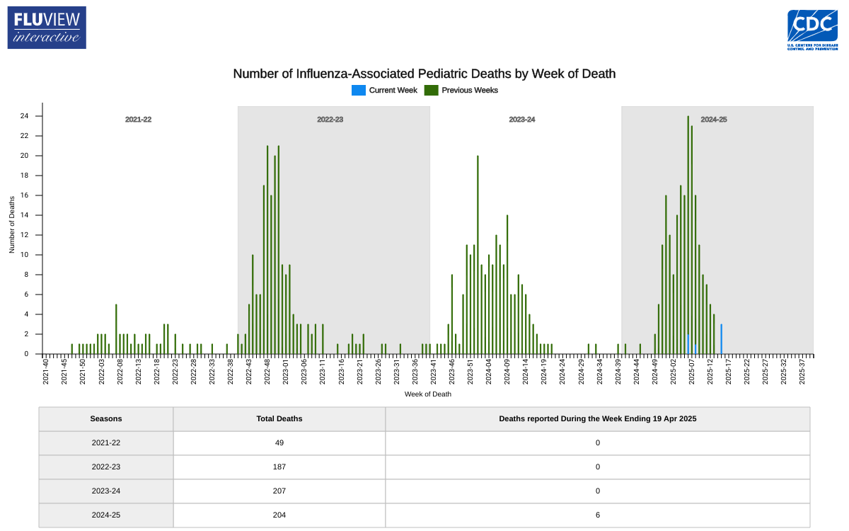 While influenza activity continued to decline across the United States, flu-related fatalities among children increased, now totaling 204 for the 2024-2025 flu season.