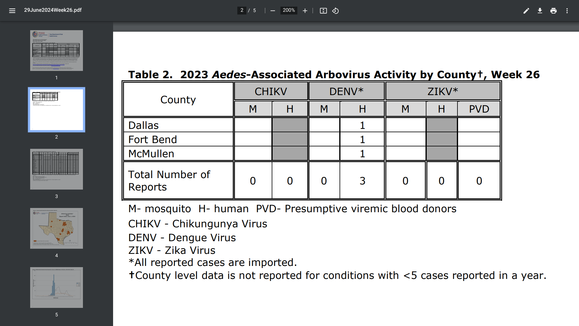 Texas DSHS dengue report June 2024
