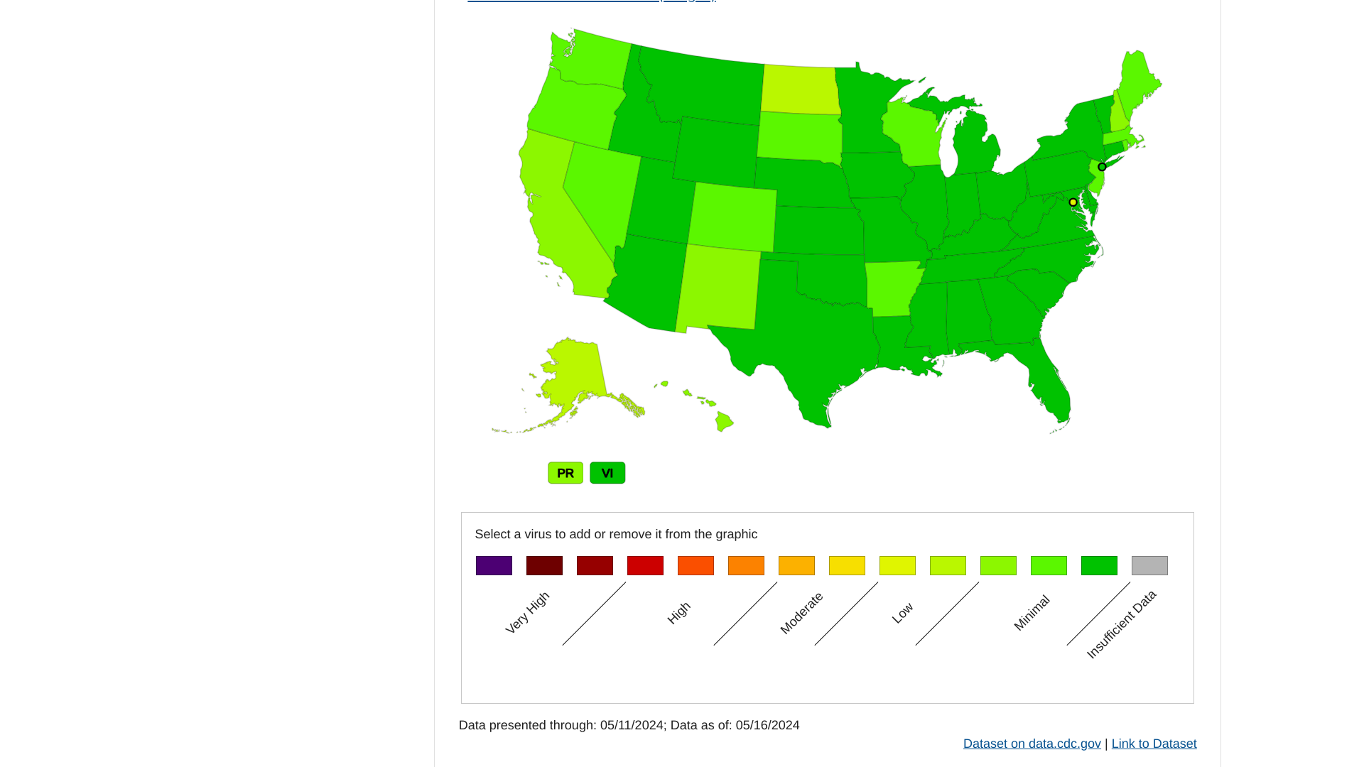 As of May 17, 2024, the CDC says no jurisdictions experienced moderate, high, or very high activity last week.