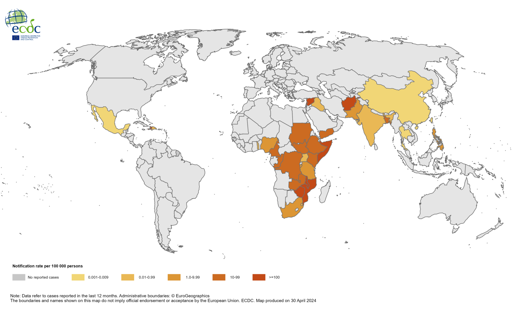 From January 2024 to April 2024, a cumulative total of 145,900 cholera cases and 1,766 deaths were reported from 24 countries across five WHO regions.