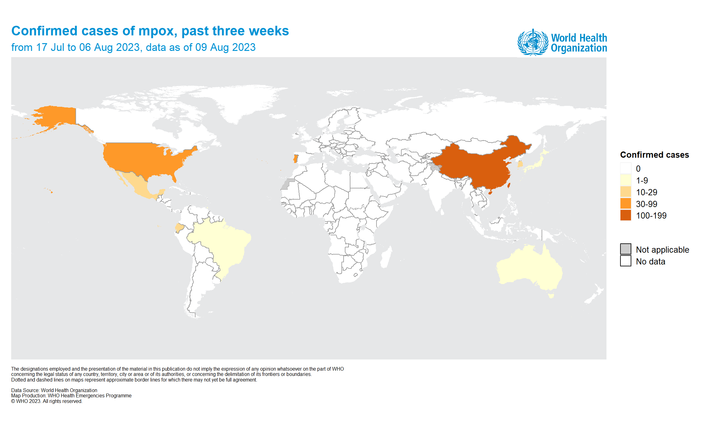 As of August 9, 2023, the highest increase in mpox cases was reported in Mexico.