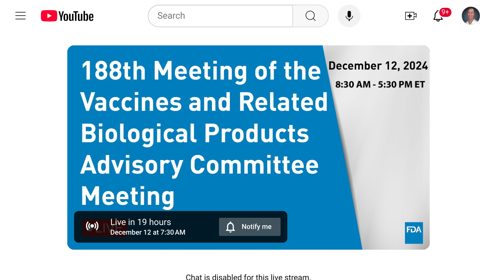 The U.S. FDA confirmed the 188th Meeting of the Vaccines and Related Biological Products Advisory Committee (VRBPAC) will be conducted on December 12, 2024,