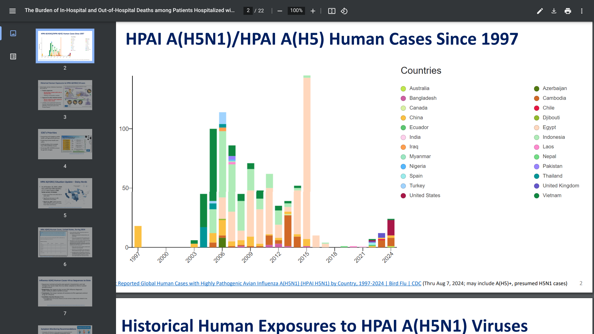 The CDC disclosed HPAI A(H5N1)/HPAI A(H5) human cases have been confirmed in numerous countries since 1997.