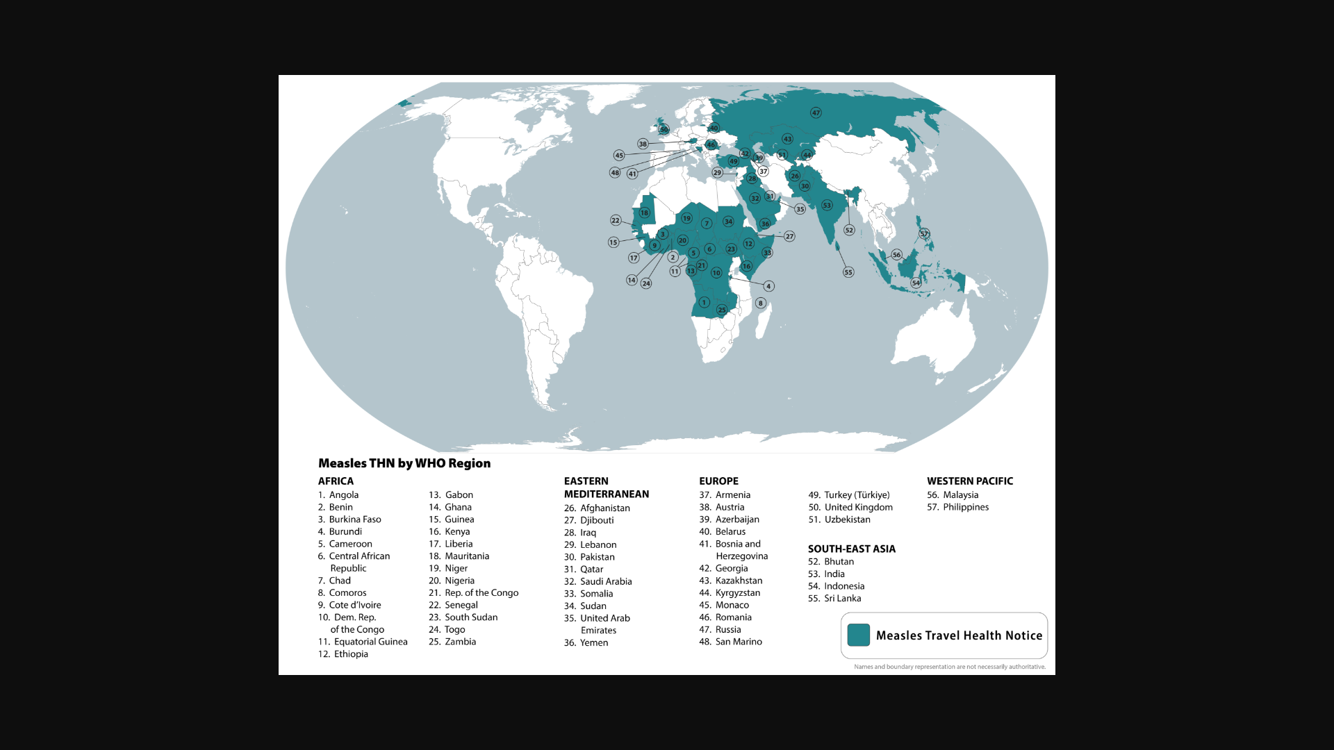 Over the past year, 57 countries and the United States have reported increasing measles outbreaks.