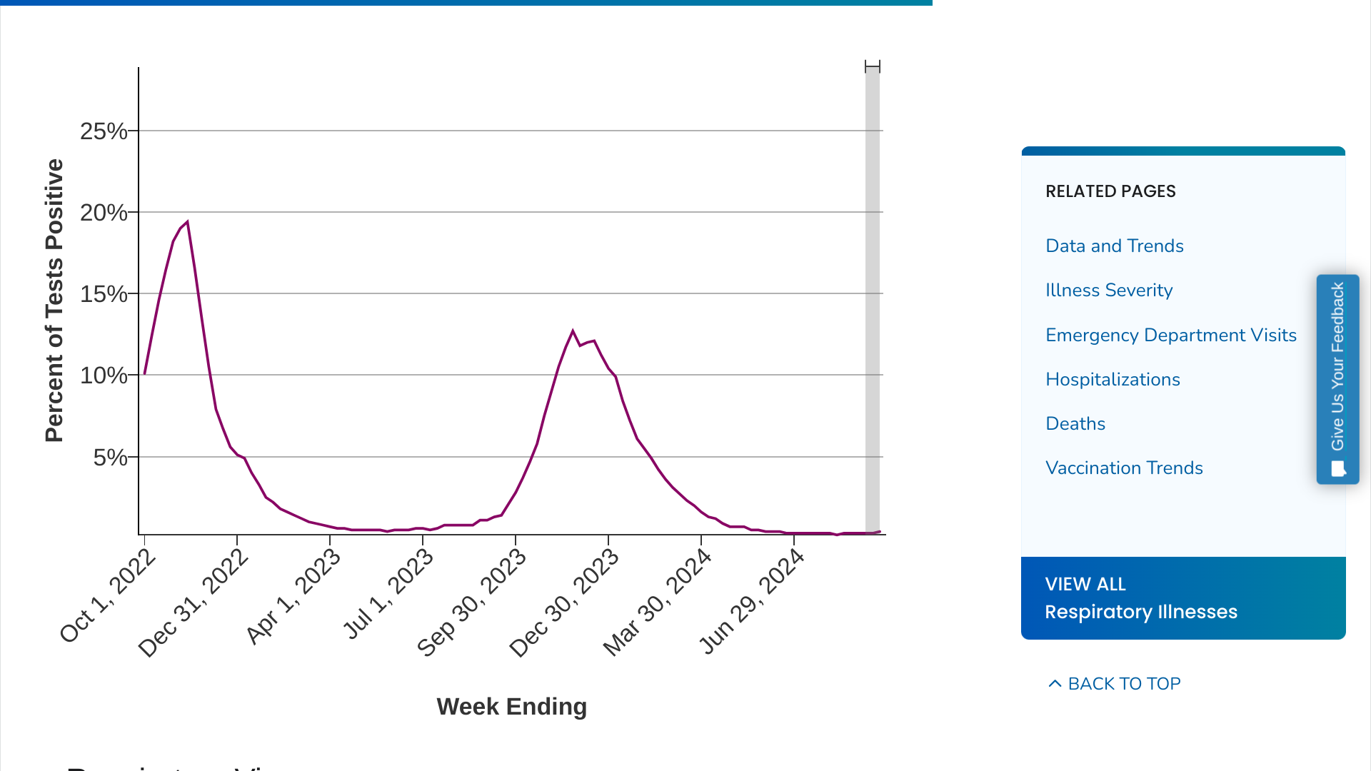 As of September 27, 2024, the U.S. CDC's latest RSV data indicates the current RSV season has started slowly but is anticipated to peak in December/January 2025.