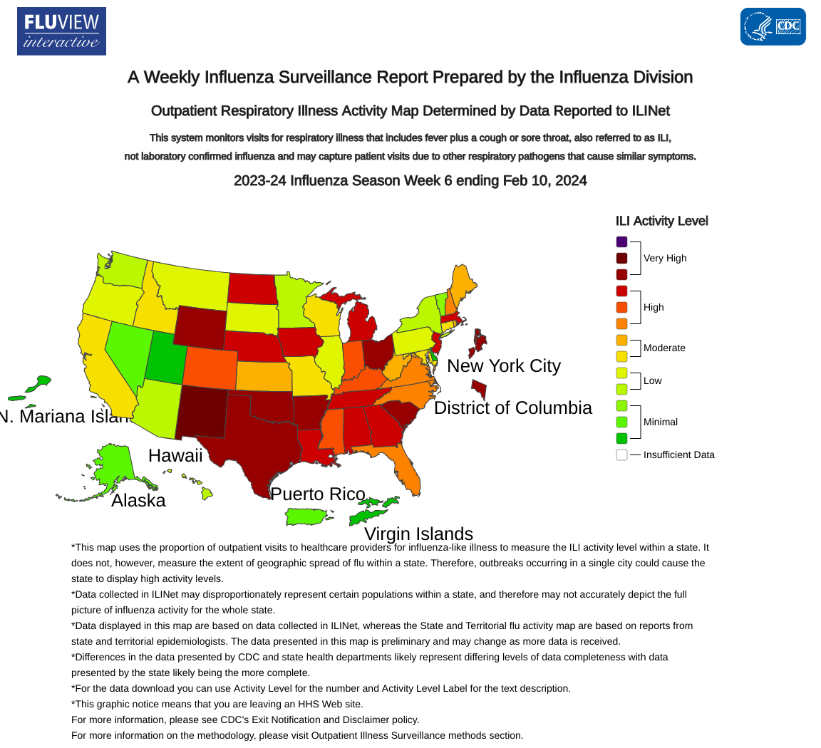 The U.S. Centers for Disease Control and Prevention (CDC) has released an update for Week #6 of the 2024 flu season.