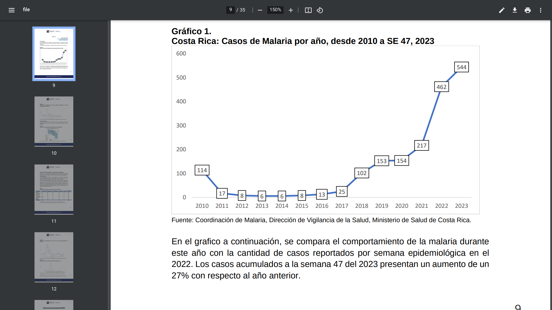 The Central American country of Costa Rica confirmed in December 2023 that there have been 544 malaria cases this year.