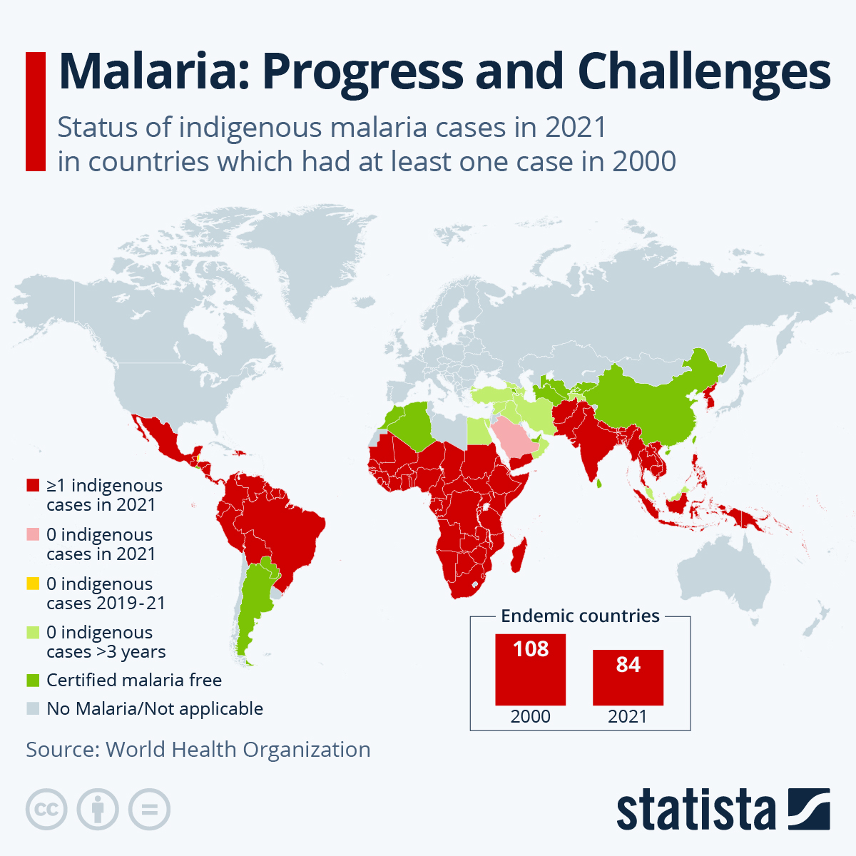 Malaria is an infectious parasitic disease transmitted by mosquitos that affects approximately 250 million people annually and was responsible for about 620,000 deaths in 2021.