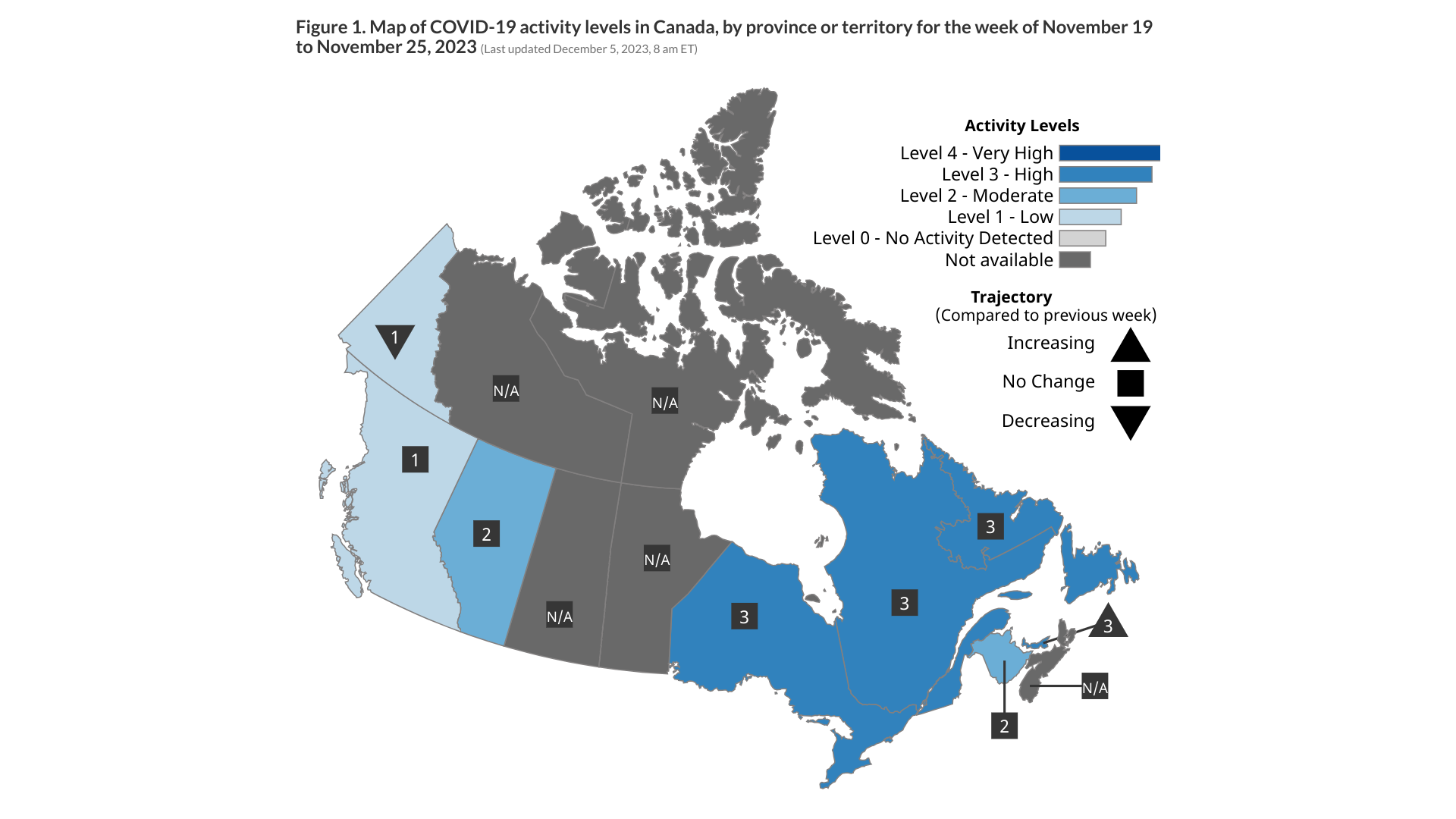 Health Canada's latest COVID-19 numbers were updated at this link as of December 5, 2023, 8 am ET.
