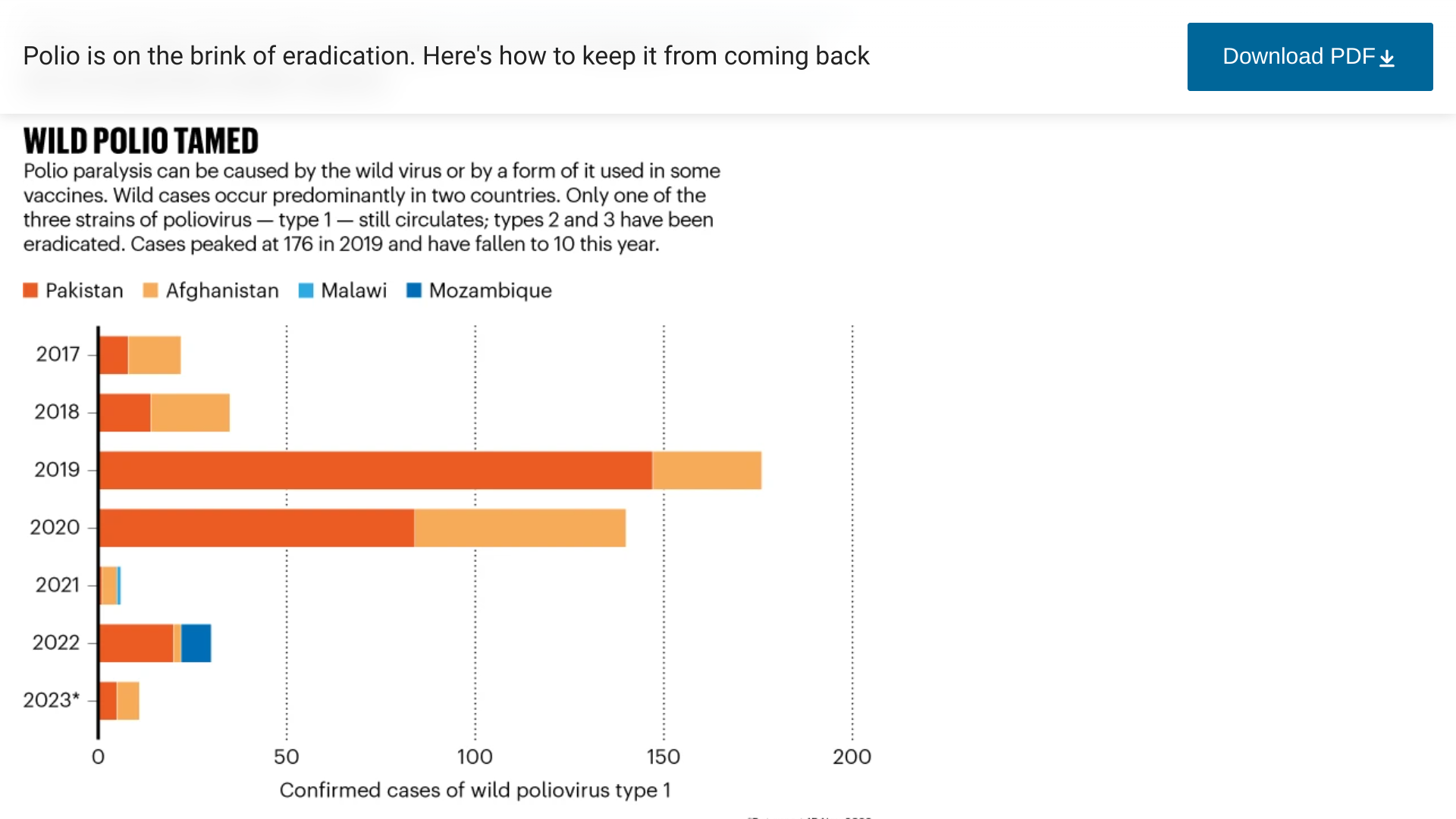 The campaign to eradicate polio could succeed in the next few years. But that's just the beginning of a new challenge, keeping it away forever, wrote Aisling Irwin in an article published by the journal Nature on November 21, 2023.