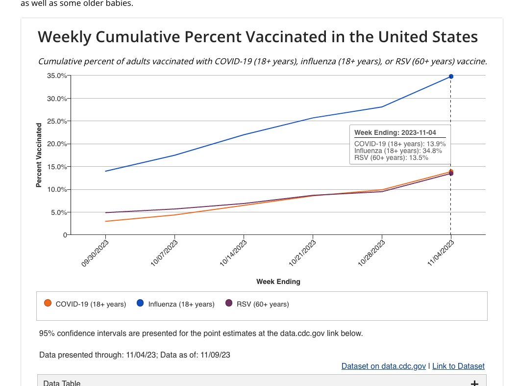 The weekly National Immunization Survey (NIS) findings were published today, providing an update on the receipt of vaccination and intent for COVID-19, RSV, and influenza vaccination.