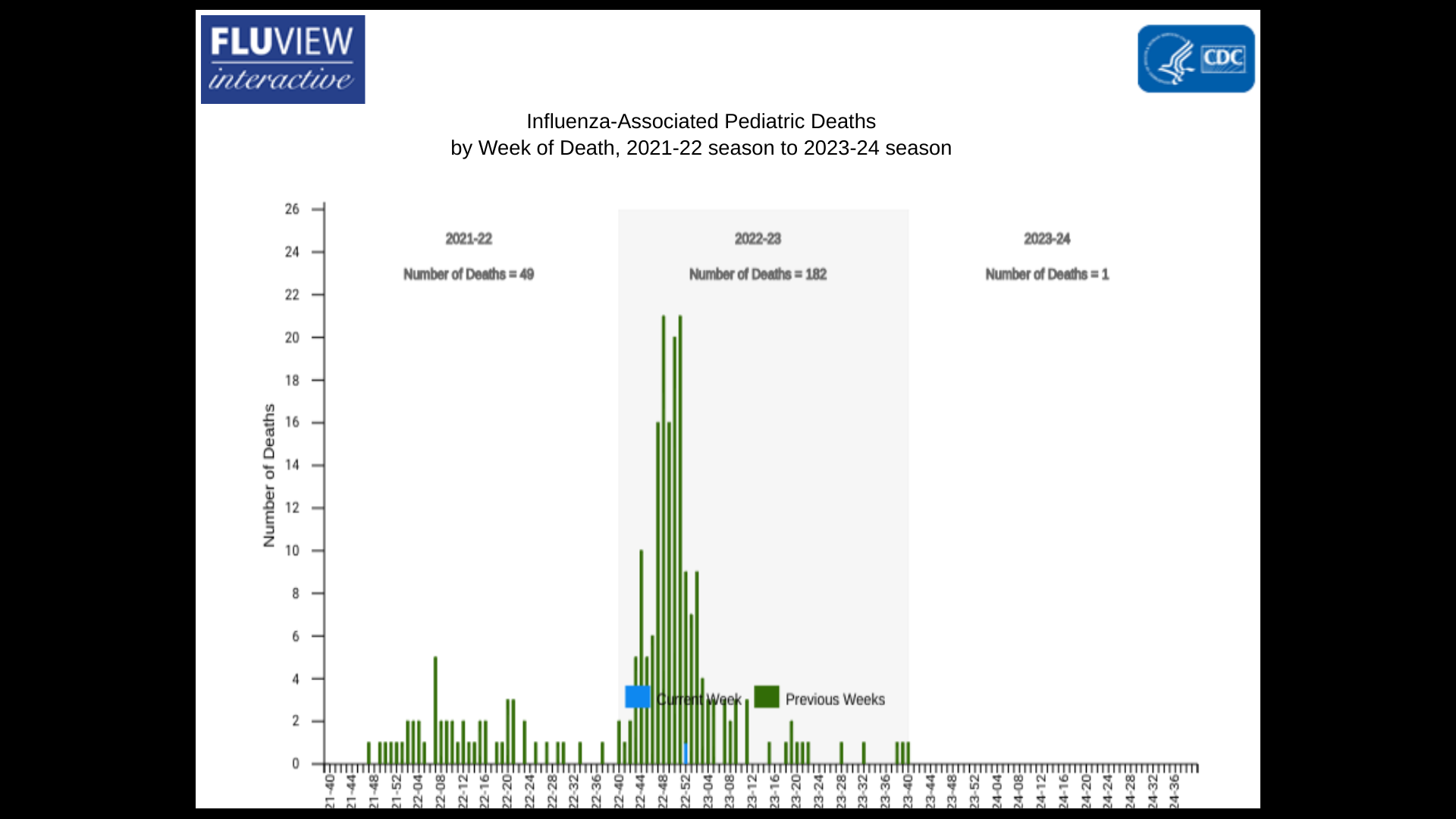 And the first influenza-associated pediatric death occurring during the 2023-24 season was recently reported.