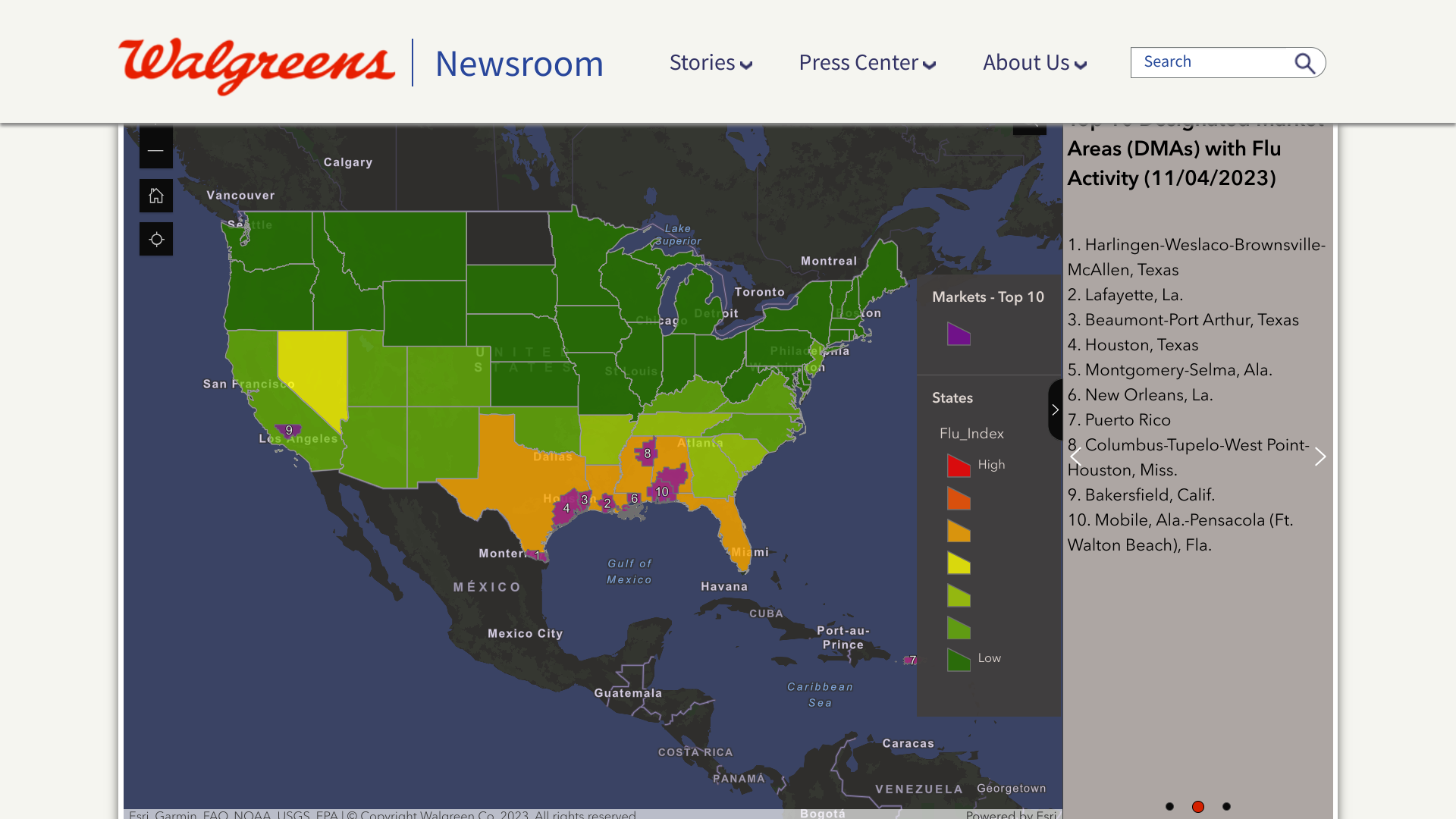 Walgreens launched the 2023-2024 Walgreens Flu Index to help communities track flu activity in their area and serve as an essential reminder to take preventive measures, including an annual flu shot.