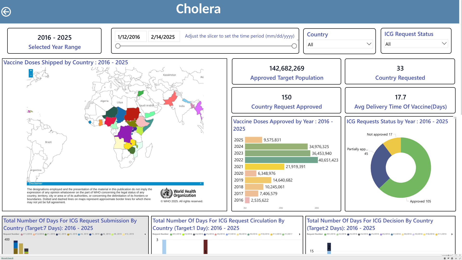 On February 20, 2025, the WHO confirmed a 27% decrease in cholera cases since December 2024. A total of 34,799 new cholera and/or Acute Watery Diarrhoea cases were reported from 19 countries, territories, and areas across three WHO regions.