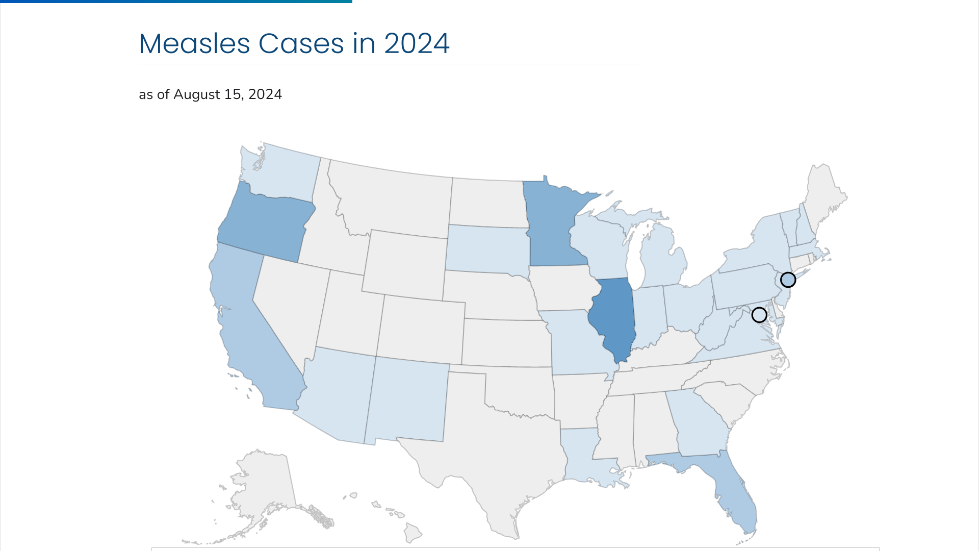 As of August 15, 2024, the U.S. CDC confirmed that 27 U.S. jurisdictions reported 219 measles cases this year. In 2023, 20 jurisdictions reported 59 measles cases for the entire year.