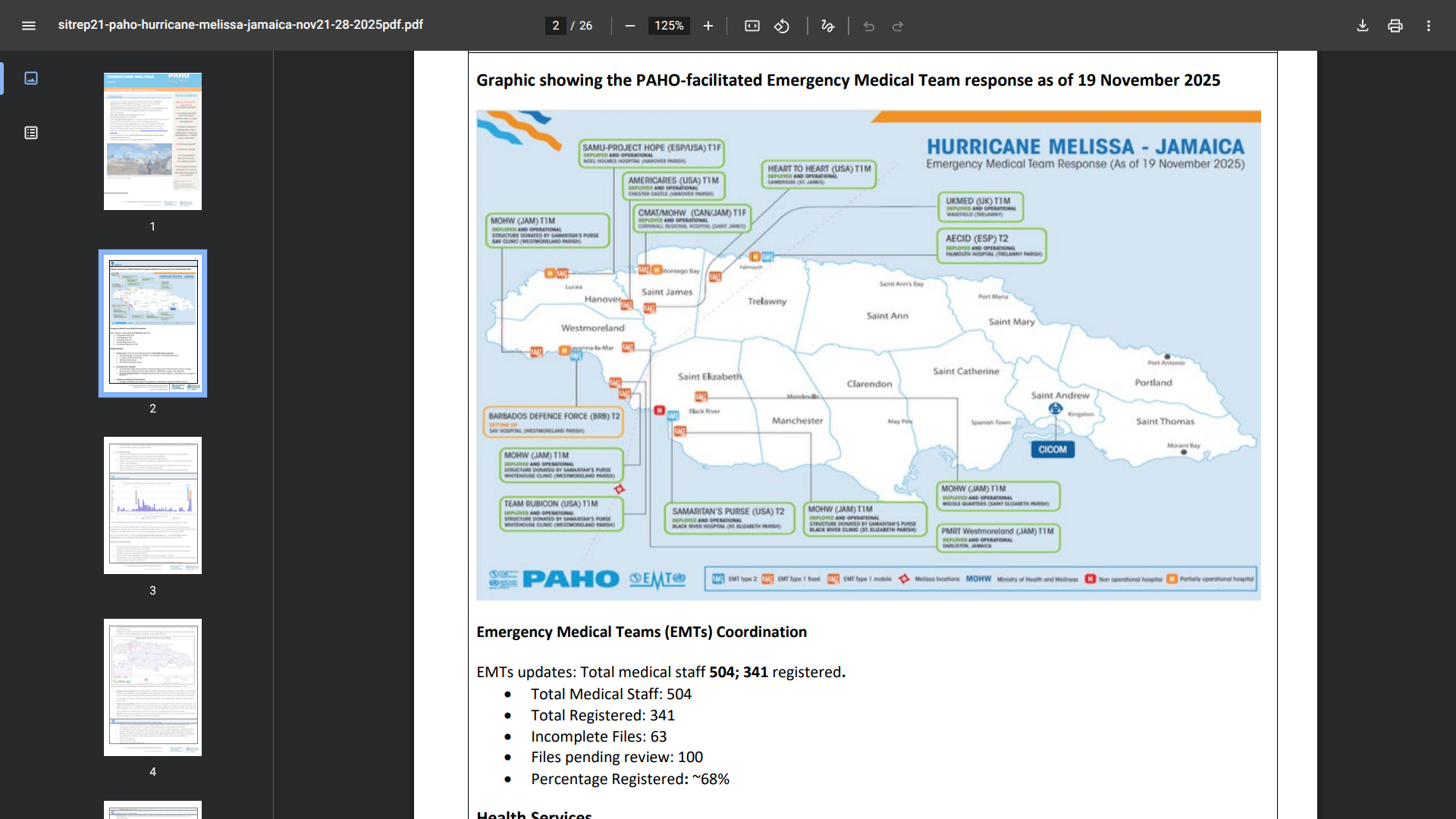 The passage of Hurricane Melissa led to flooding in many communities, increasing the risk of leptospirosis transmission. By early December 2025, the ministry reported (#36) 71 suspected, probable, or confirmed leptospirosis cases following the hurricane.