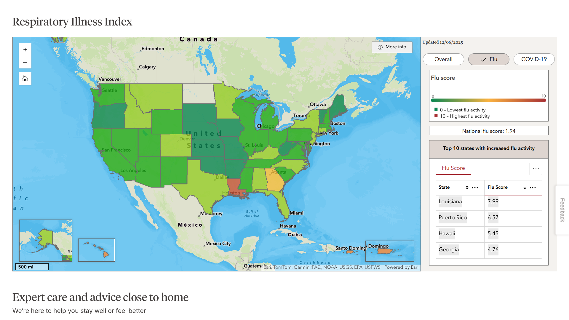 According to the Walgreens Respiratory Illness Index on December 9, 2025, Louisiana, Puerto Rico, Hawaii, and Georgia are the most recent, unfortunate leaders reporting flu outbreaks.